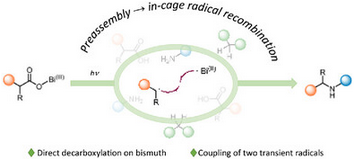 Persistent transition metal radicals form the foundation for many metallaphotoredox protocols. Their ability to efficiently trap organic radicals and convert them into various coupling products has inspired the exploration of selective radical reactions even beyond the d-block. Radical processes involving bismuth hold great potential, but innovative strategies are required to control the reactivity of bismuth intermediates. Herein, we report preassembly as a powerful strategy to enforce a selective recombination of a bismuth(II) radical and an organic radical. As a result, an inner-sphere pathway is accessed, enabling the formation of C─N coupling products.