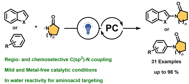 Boselli, Monica Fiorenza; Ghosh, Indrajit; Intini, Niccolò; Fattalini, Marco; Puglisi, Alessandra; König, Burkhard; Benaglia, Maurizio: Visible-Light Photoredox Catalytic Direct N-(Het)Arylation of Lactams. Chem. Eur. J. 2025, e202404385.